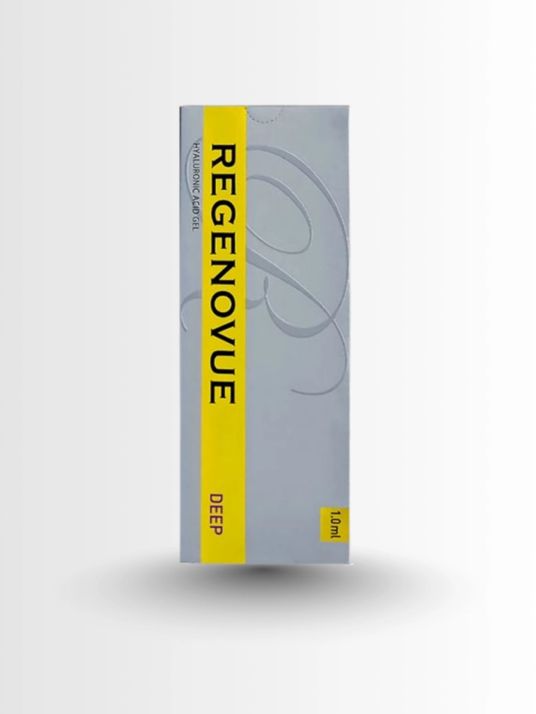 Regenovue Deep Plus Lidocaine is a dermal filler of high-quality non-animal hyaluronic acid and lidocaine for smoothing the nasolabial folds and medium to deep wrinkles on the forehead and around the lips, and the lips themselves.