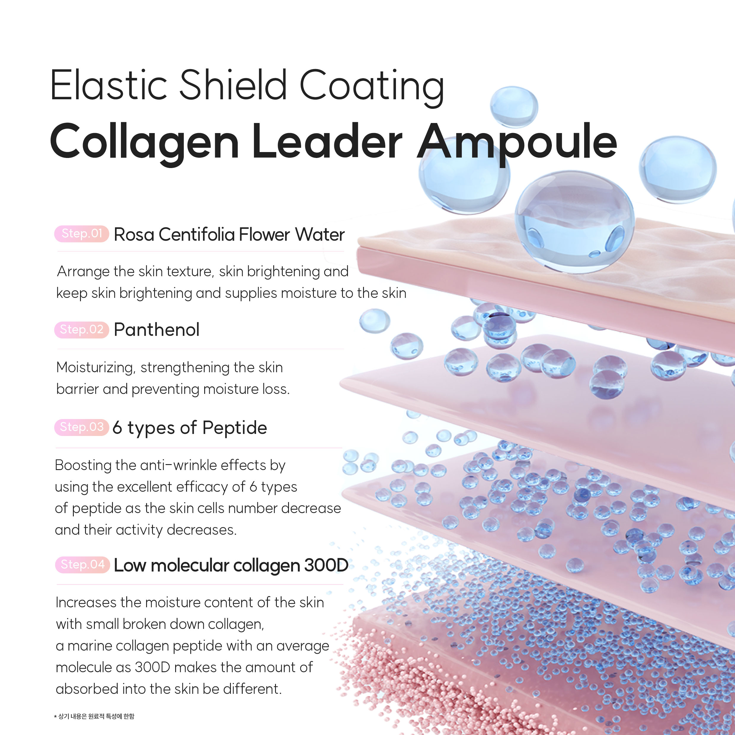 A highly concentrated elasticity-boosting ampoule that delivers deep moisture and firmness using low-molecular collagen and advanced peptide complexes.