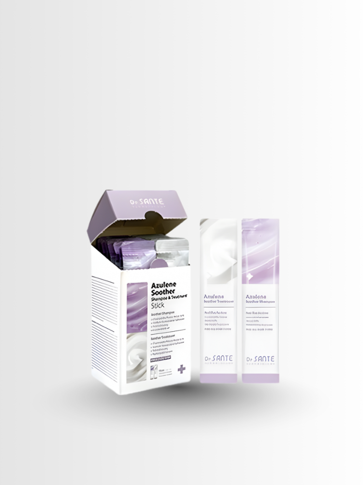 A convenient travel-friendly set containing single-use shampoo and treatment sticks formulated to soothe the scalp, reduce irritation, and restore silky softness to the hair—perfect for use during travel, gym sessions, or business trips.